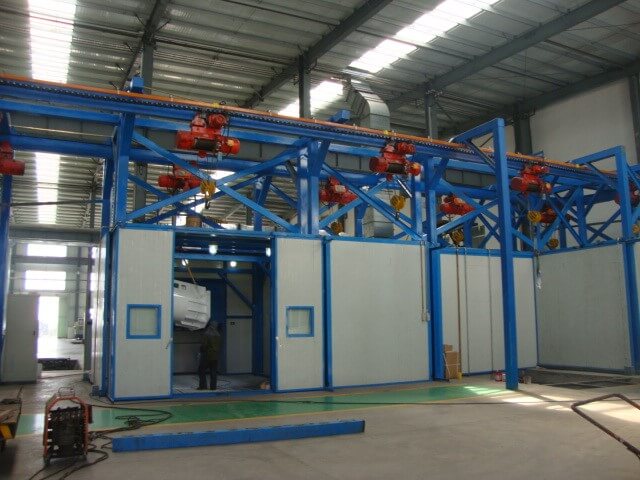 大批量的中小型工件的表面處理及其噴漆,單一的人為作業(yè),無法滿足要求??赏ㄟ^懸掛線,可實(shí)現(xiàn)大批量的作業(yè)。